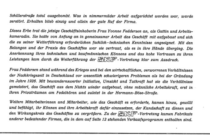 Frau Yvonne Feddersen als Gattin und Arbeitskameradin das Erbe an und führte die Firma zu neuer Größe.