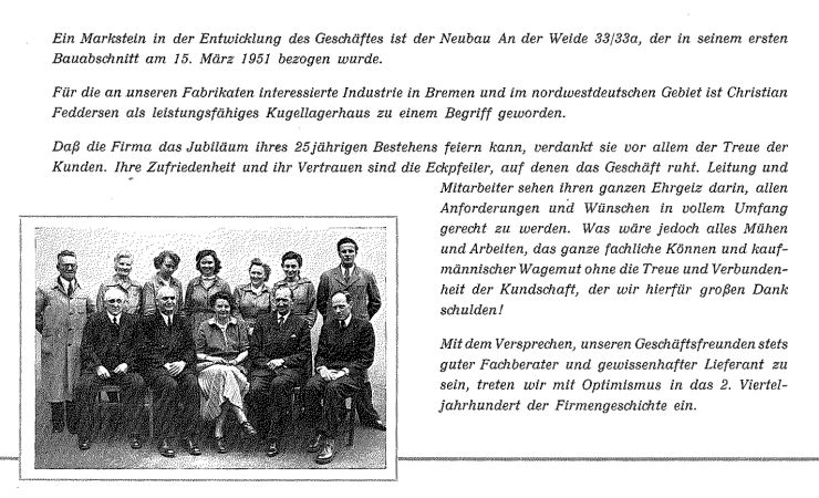 Frau Yvonne Feddersen als Gattin und Arbeitskameradin das Erbe an und führte die Firma zu neuer Größe.
